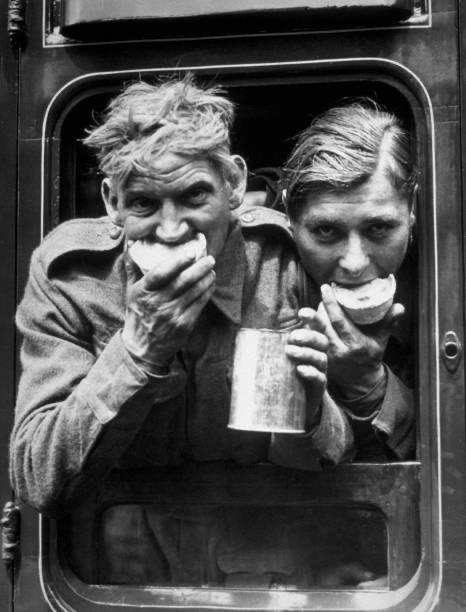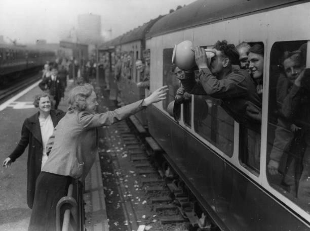 The excitement and jubilation, after days of fear, meant people broke rules to express their joy. Do you remember how bare the shop shelves were at one point at the beginning of the COVID lock down. Well people described shelves like that, with nothing left, as everything was being handed to the men on the trains. It’s nice to think that in 1940 shelves were emptied by selflessness, remembering the food was rationed so the selves were not restocked for weeks and people went without the things they gave to soldiers.