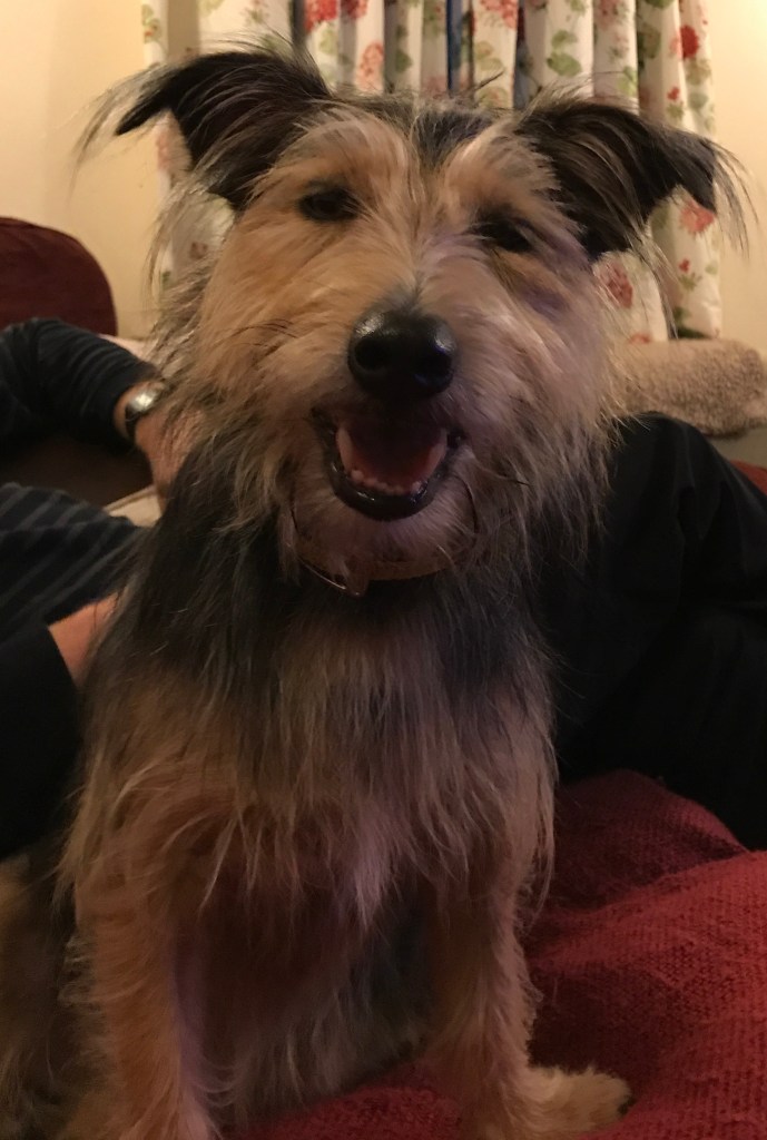 I didn’t have a pet dog as a child, it wasn’t until my daughter was fourteen that we introduced a dog into our lives. The idea of having our first dog came from a book. I picked up a book on dog breeds in a garden centre. It opened at random on a page with the image of a black Patterdale Terrier. I said to my daughter, ‘If we have a dog, we’ll have that breed.’ It was probably three years later that we found Pepper. He was the last dog in the litter, a family dog from the outset not a working dog. We found him after visiting the vets to ask what we needed to do as we planned to pick up a Patterdale Terrier from Wales. Patterdales weren’t very common then. Pepper was born just up the road from our house and it was as though he was meant for us, the timing was so perfect. He was a very placid loving dog, which is a rare character for a Patterdale. He grew up to be the image of the dog in the book, he had long legs for a Patterdale, as the image in the book had.