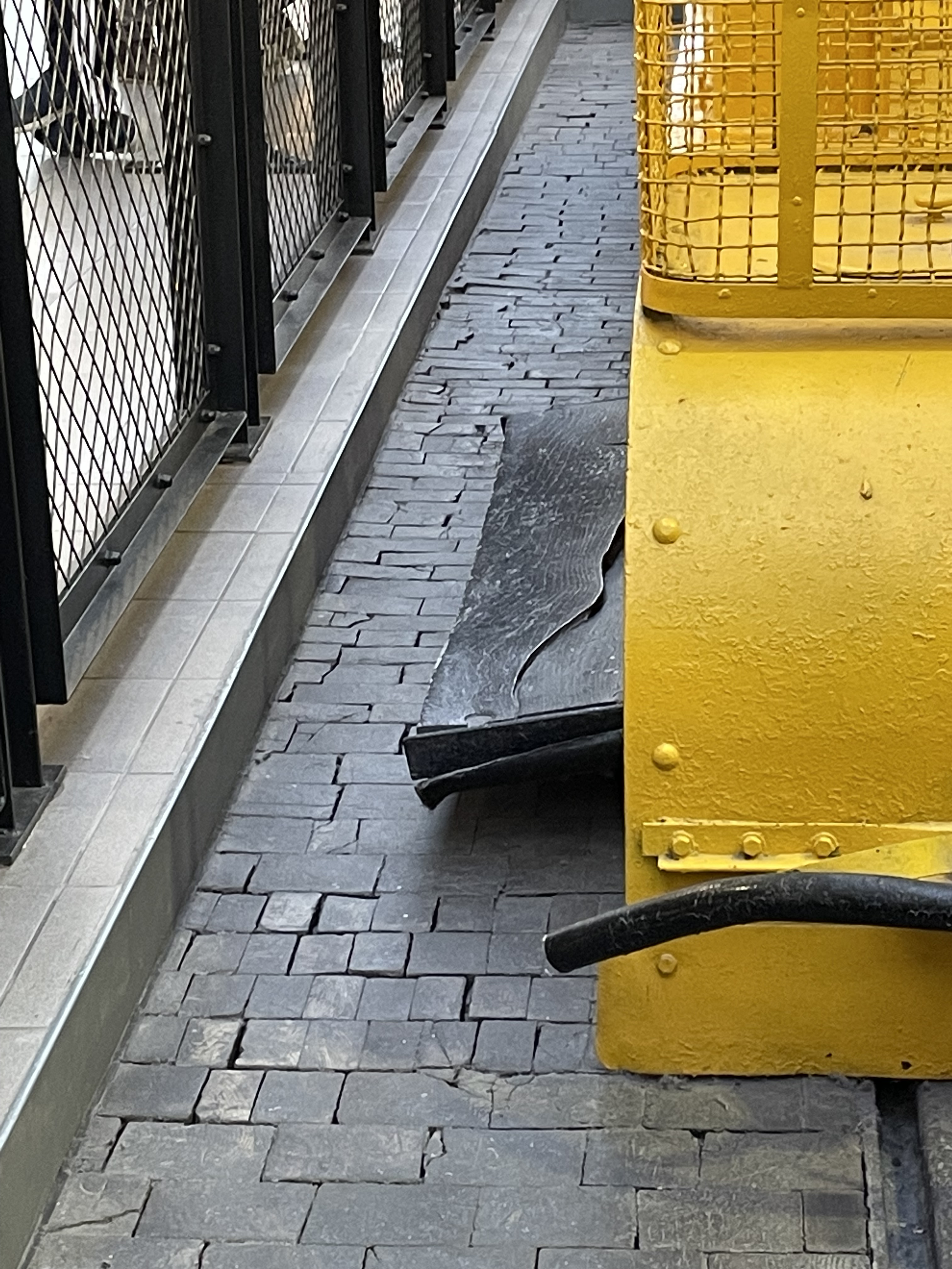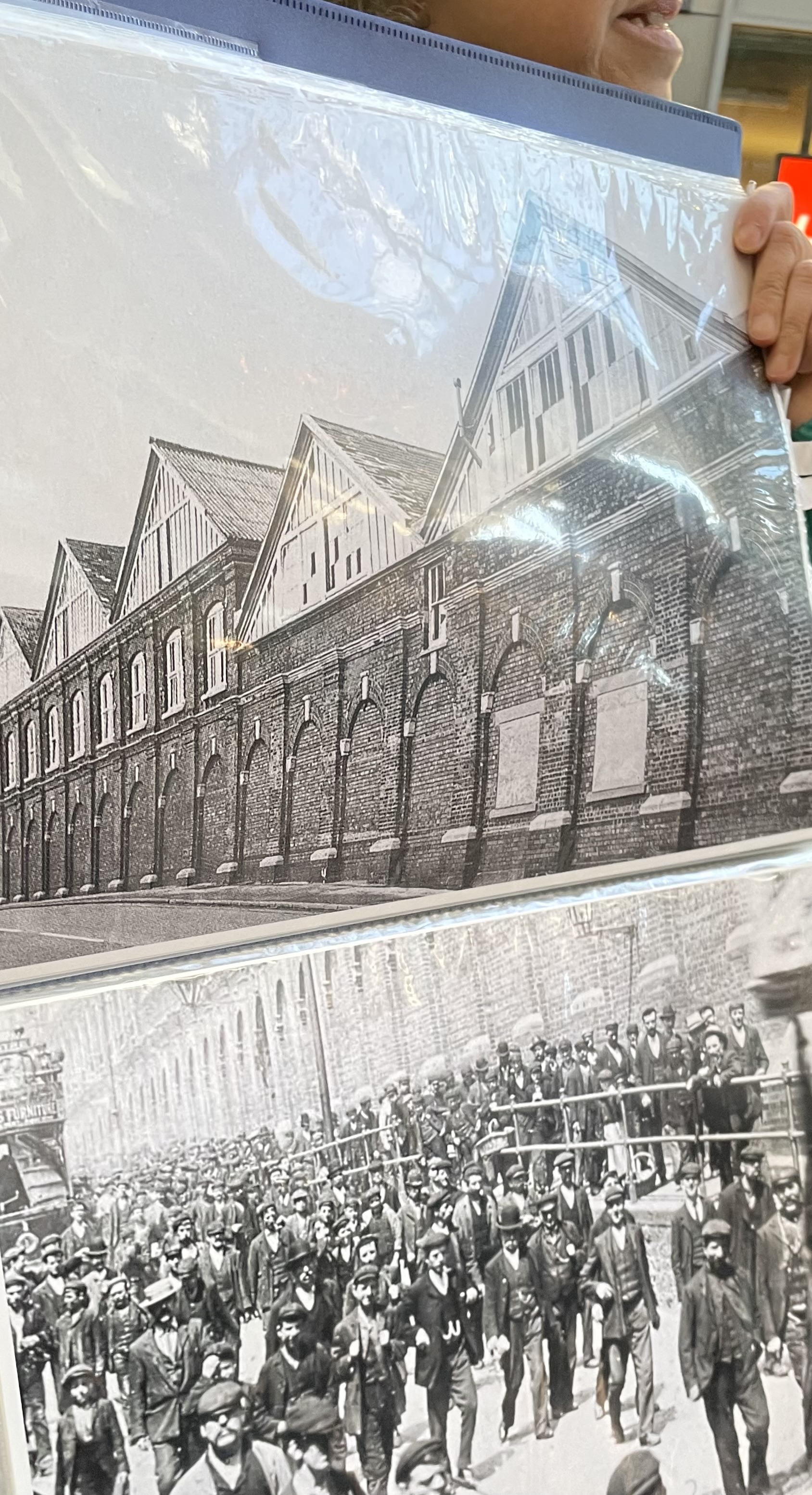 For instance, right in the middle of the front entrance hall, near what was the old pattern store on Rodbourne Road, is a large crane. Of course, I’ve seen the large piece of machinery that is hard not to notice, but on the floor around it you can see wooden cobbles. The cobbles in most of the workshops were made of wood, and that’s because in the workshops that were ‘hot workshops’ (that’s what the workshops containing furnaces were called then), stone flooring would have become too hot. The wood was soaked with oil during processes, so they changed the flooring once a year and men were given the wood to burn. There are so many more things I could say, but another fascinating one for me was one of the earliest cranes. The man would sit up on a crane and move it by turning the mechanism by hand so the crane slid along a system on the roof, and apparently the night shift workers would sometimes hide up on the cranes to sleep.