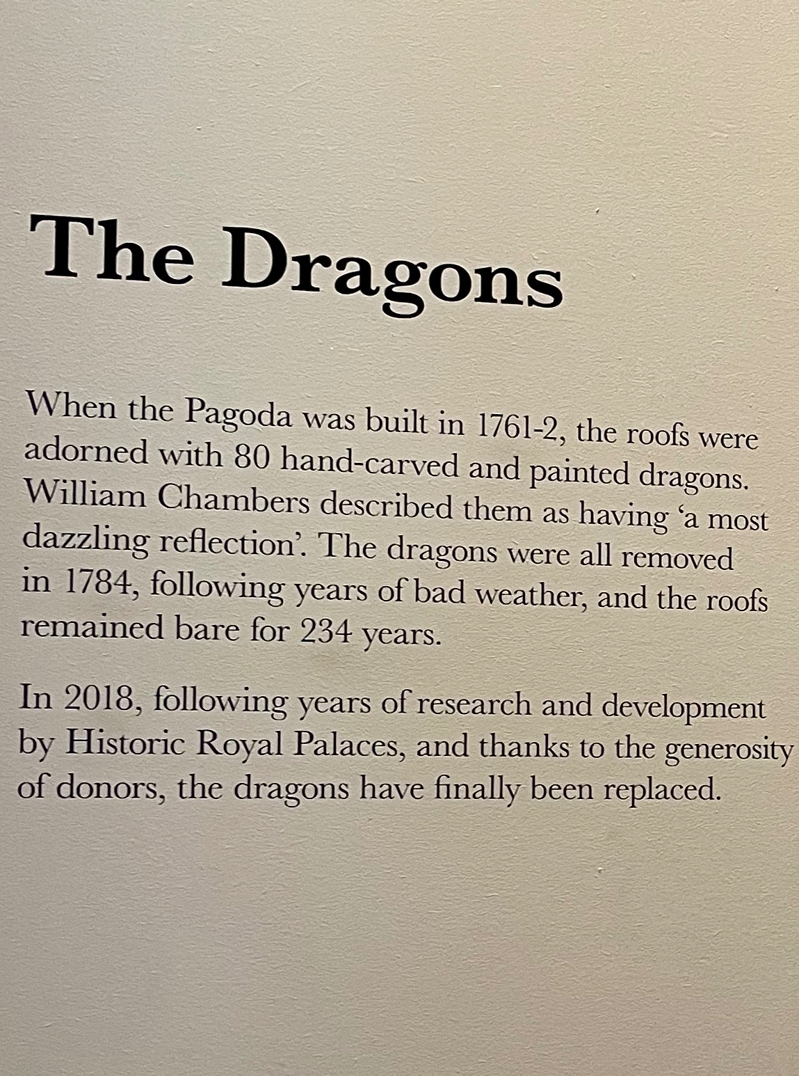 When I saw this amazing Pagoda built in a Chinese style in the palace gardens at Kew, I thought of the Chinese inspired interiors of the Royal Pavilion in Brighton. The Royal Pavilion in Brighton was built for George III’s son and heir, Queen Charlotte’s eldest son. The Regent who became King George IV. The Royal Pavilion looks like an Indian Palace on the outside but is dressed like a Chinese palace inside with gold dragons holding up chandeliers and curtains. You can see inside the Royal Pavilion here on the museum website. My mind connected the two buildings because George IV did not get on well with his father and I can imagine him wanting to make something even more impressive than the Pagoda. Or perhaps, as a boy King George IV would have lived amongst his grandmother’s follies too and perhaps he held on to fond memories of the Pagoda from his childhood. King George IV was an obsessive collector of foreign artefacts.