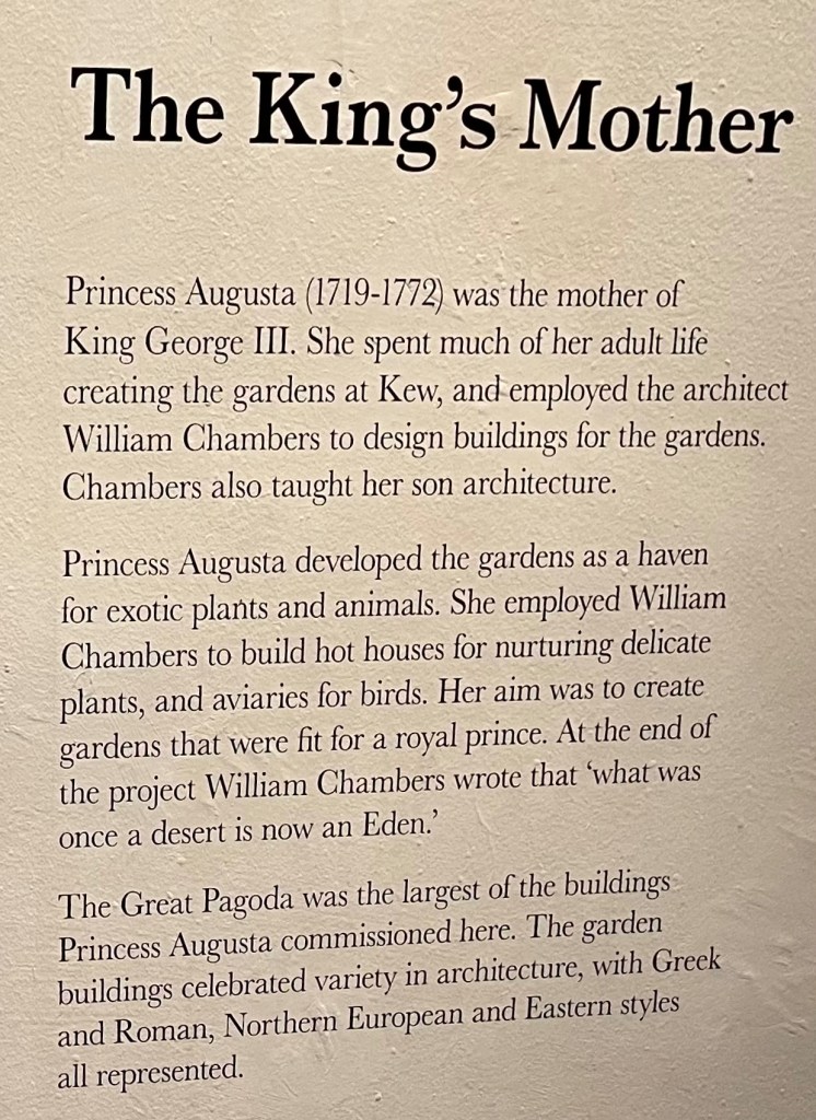 The layout of the garden at Kew has changed since the 1700s, but the garden is now The Royal Botanic Gardens, which is a wonderful legacy of Princess Augustus’s desire to teach her son. What she started is still a place of learning that’s now accessible to everyone.