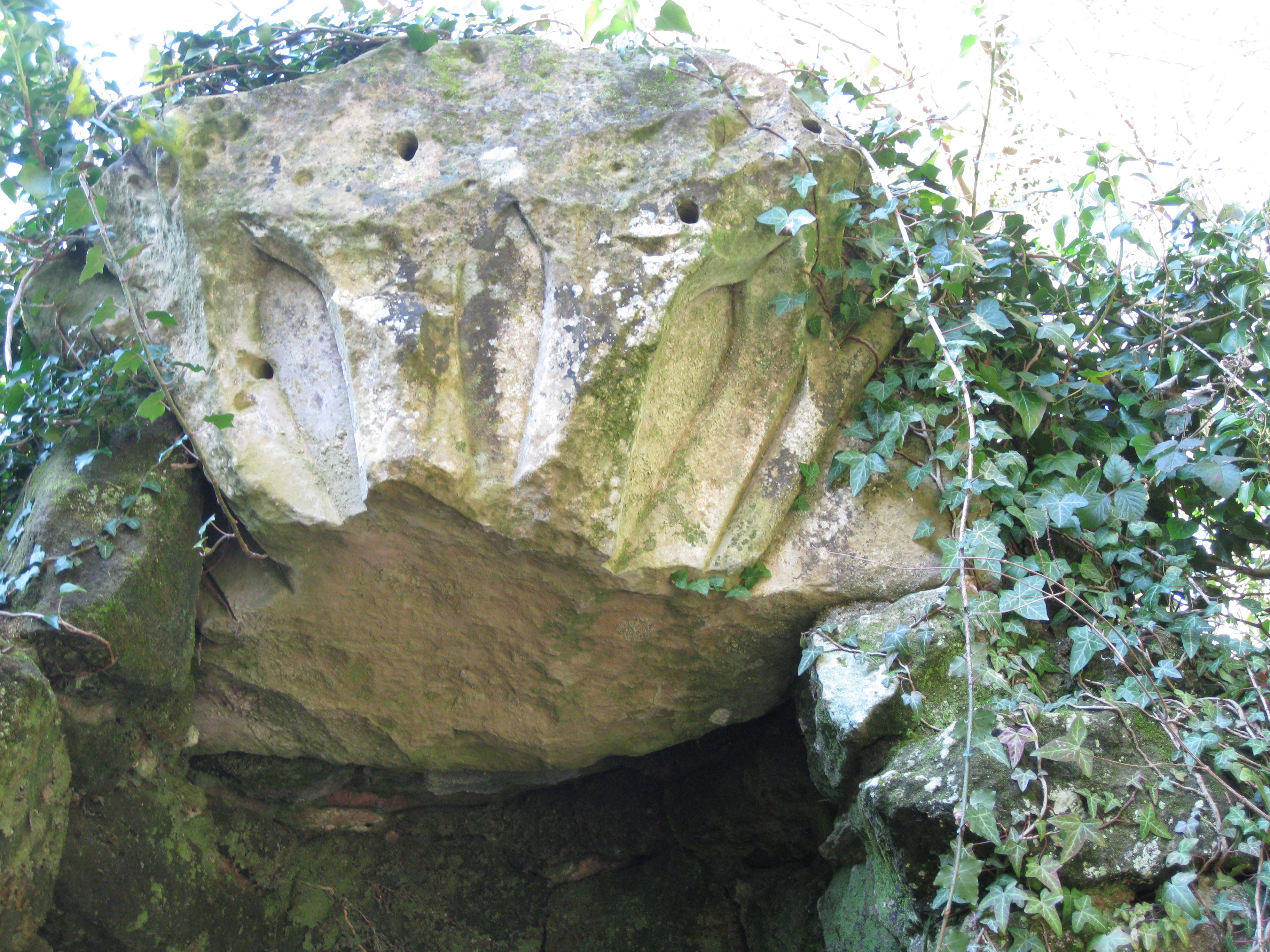 Staying in the gothic style is what survives of Lord Arundell’s stone ring. To add even more authenticity and age to his pleasure garden he transported a 4,000 year old prehistoric ring of stones from Tisbury, and added two seats to it for his guests to idle away their afternoons upon, reading poetry, or painting. In these stone alcoves he incorporated decorated stone from the fallen ruins.