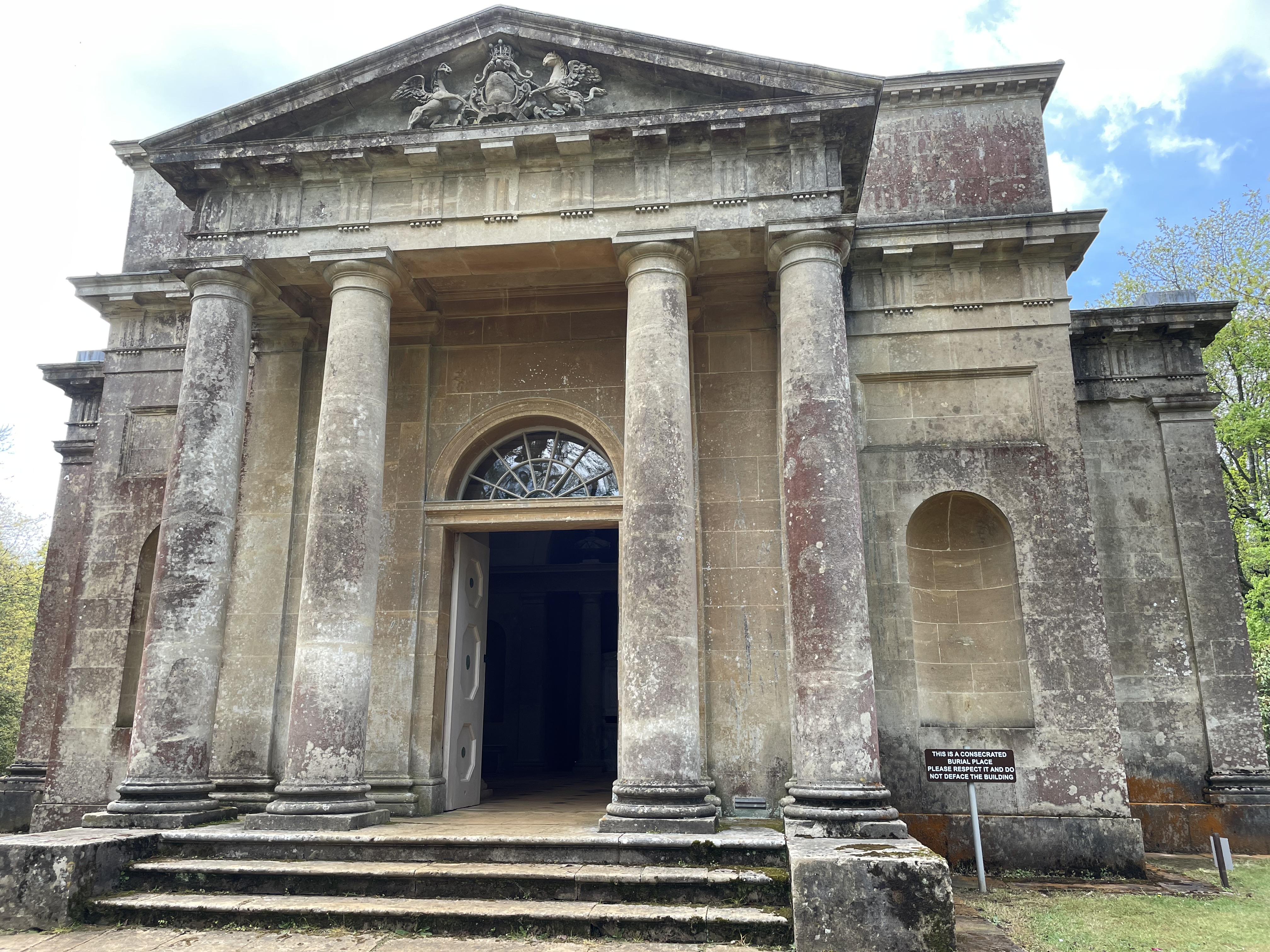 Topically, for the date I publish this, Queen Camilla’s closest friend, Fiona Petty-Fitzmaurice, Marchioness of Lansdowne, who stood by the Queen during the King’s coronation this weekend, owns Bowood House and Park. This is her family mausoleum.