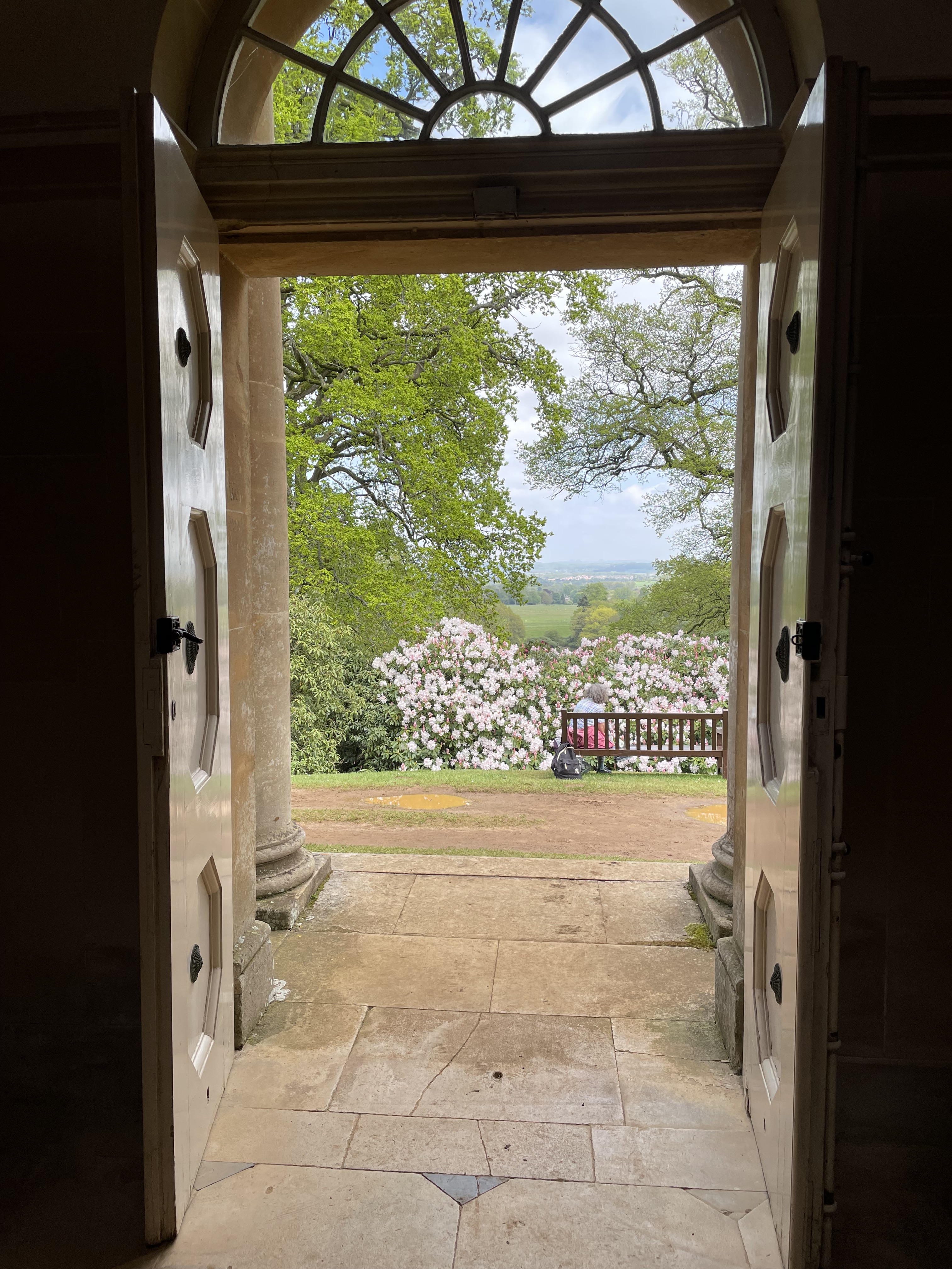 I walked around the rhododendron woods in the parkland of Bowood House yesterday. When the rhododendrons and bluebells are in flower the woods are an amazingly beautiful place. As you know, if you read this blog, the settings of scenes in my regency and even now my J.S. Lark thrillers are inspired by real places. I don’t think I have shared this one before, but at the heart of these woods is the Shelburne family mausoleum. When you look at the front, you will see that it is built in the style of a roman temple, and when you walk around to the back you will see that there is a steep slope to a crypt beneath this, where most of the family are put to rest. This slope meant that a horse drawn hearse could be steered to bring a coffin down.